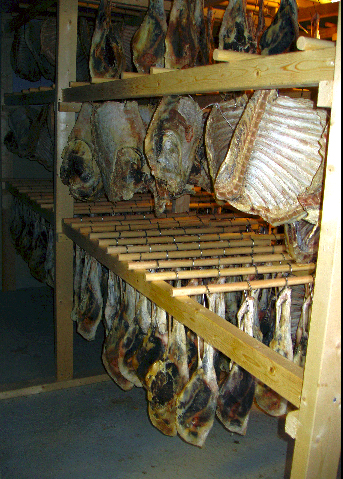 at den skal tørke betre. Dette vert så hengt til tørking om lag 6 veker