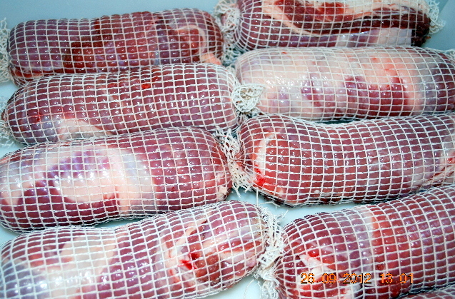 Denne er laga av tynnsider frå lam. Rullen er krydra med salt og peppar.